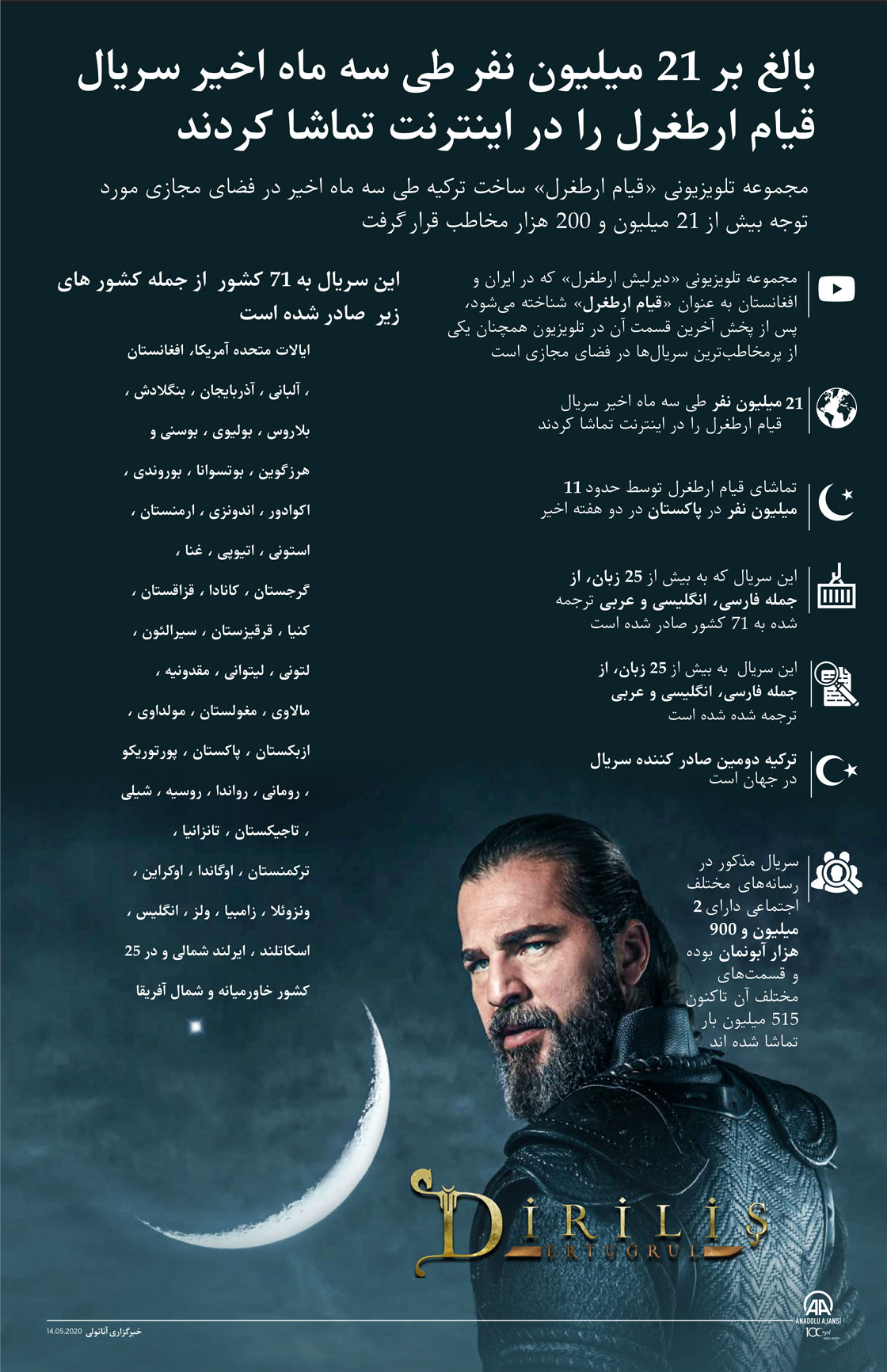 بالغ بر 21 میلیون نفر طی سه ماه اخیر سریال قیام ارطغرل را در اینترنت تماشا کردند