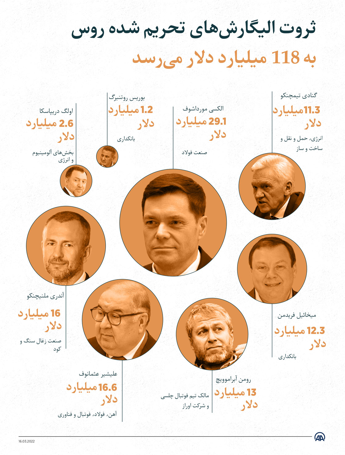 ثروت الیگارش‌های تحریم شده روس به 118 میلیارد دلار می‌رسد