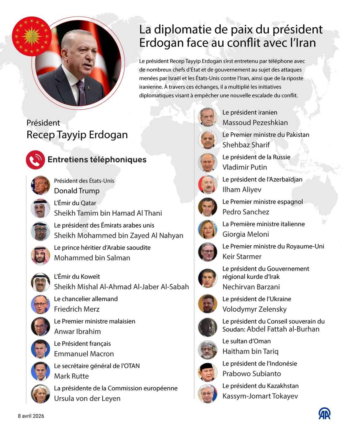 Le président Recep Tayyip Erdoğan s’est entretenu par téléphone avec de nombreux chefs d’État et de gouvernement au sujet des attaques menées par Israël et les États-Unis contre l’Iran, ainsi que de la riposte iranienne