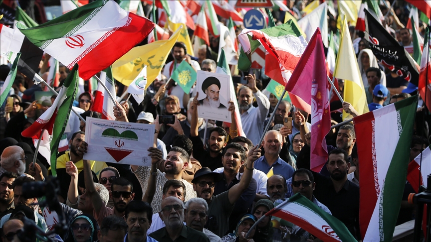 Des Iraniens se sont rassemblés, dans la nuit de mardi à mercredi, sur la place de Palestine, dans la capitale Téhéran, pour manifester leur soutien aux dirigeants du pays et aux récentes opérations militaires menées contre Israël.