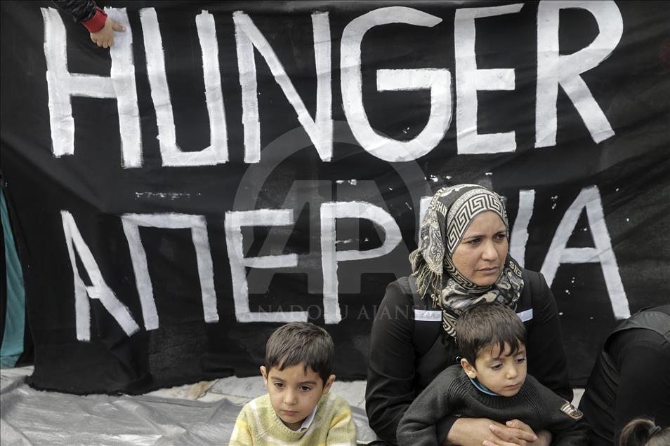 Plusieurs réfugiés ont installé mercredi des tentes devant le bâtiment du Parlement grec dans la capitale Athènes, annonçant leur intention d’entamer une grève de la faim. Selon le correspondant d’Anadolu, des centaines de réfugiés, pour la plupart des Syriens, ont manifesté mercredi sur la place Syntagma devant le Parlement à Athènes. ( Ayhan Mehmet - Anadolu Ajansı )