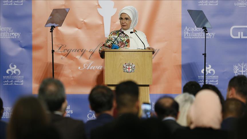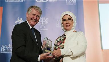 Emine Erdogan, épouse du Président de la République de Turquie, Recep Tayyip Erdogan, s’est vu décerner le prix du "Service Humanitaire" à l’occasion du Forum Mondial des Donateurs organisé par le Congrès mondial des Philanthropes Musulmans, qui a débuté, lundi, dans la capitale britannique, Londres.