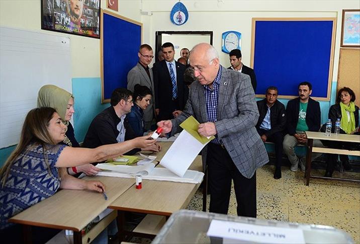 Le Président de la Grande Assemblée Nationale de Turquie (GANT), Cemil Cicek, a voté, dimanche, à l’école primaire Sevin de Golbasi a Ankara, dans le cadre des élections législatives du 7 juin.