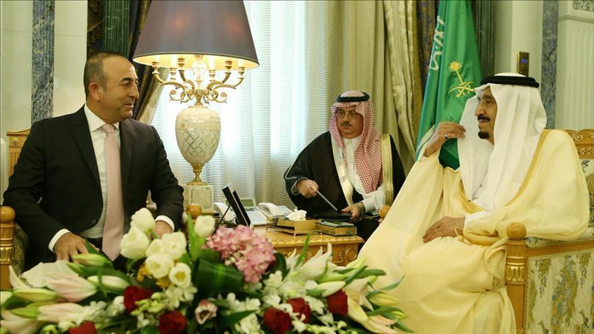 Le roi saoudien Salman bin Abdulaziz Al Saoud a reçu, dimanche, dans son bureau au palais Al-Yamamah, dans la capitale saoudienne, Riyad, en Arabie Saoudite, le ministre turc des Affaires étrangères Mevlut Cavusoglu.