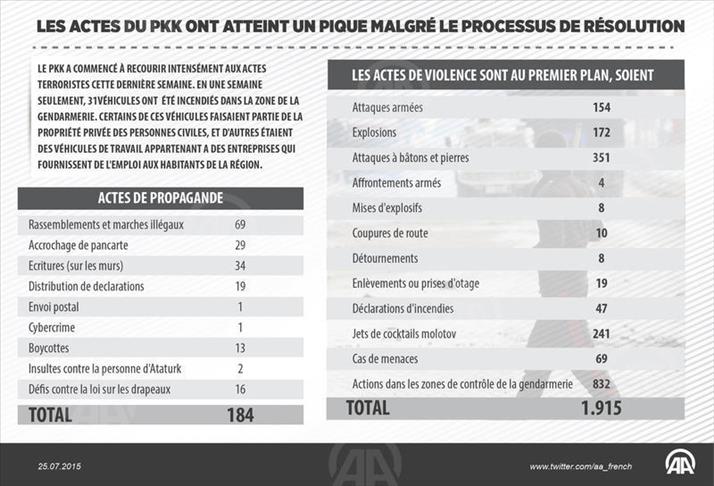 Cette année, malgré le Processus de Résolution, l’organisation terroriste PKK a été responsable de mille 267 actes terroristes dans les zones sous le contrôle de la police, atteignant un seuil très élevé.