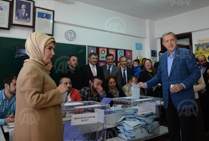 Recep Tayyip Erdoğan, Premier ministre de la République de Turquie, et son épouse Emine Erdoğan ont voté à l'occasion des élections municipales, à l’école primaire Üsküdar Burhaniye à Istanbul, ce dimanche 30 mars.