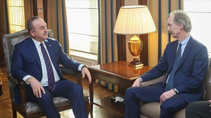 Le ministre turc des Affaires étrangères, Mevlut Cavusoglu, s'est entretenu, lundi, avec l'envoyé spécial des Nations Unis en Syrie, Geir O. Pedersen, à Ankara, en Turquie.