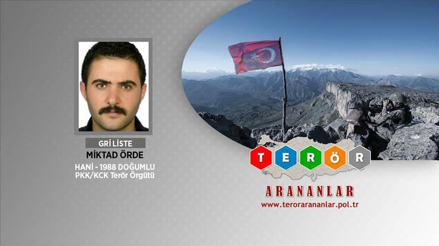 Le "dirigeant" terroriste Miktad Orde, inscrit sur la liste grise du ministère turc de l'Intérieur, a été neutralisé dans le sud-est de la Turquie.