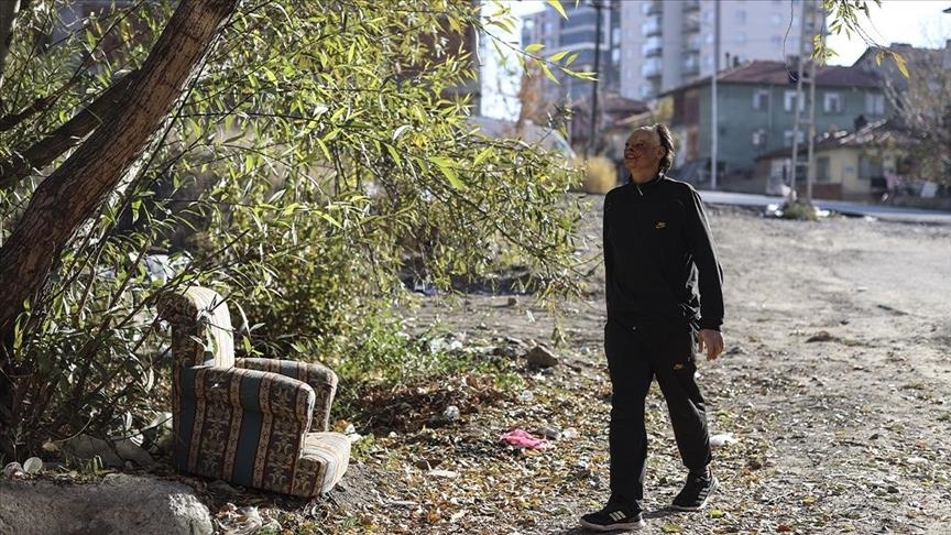 Il vit désormais dans la capitale turque, Ankara, loin de sa famille, et subvient à ses besoins grâce aux philanthropes et l'argent qu'il gagne de la collecte de plastiques dans les poubelles.