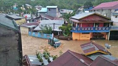 Longsor diperkirakan disebabkan oleh hujan deras dan juga merusak rumah warga dan sejumlah kendaraan.