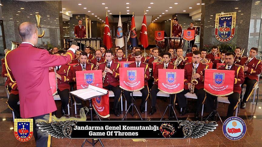 Gendarmerie Turki merayakan musim baru serial televisi Game of Thrones (GoT) dengan memainkan lagu tema serial populer tersebut.