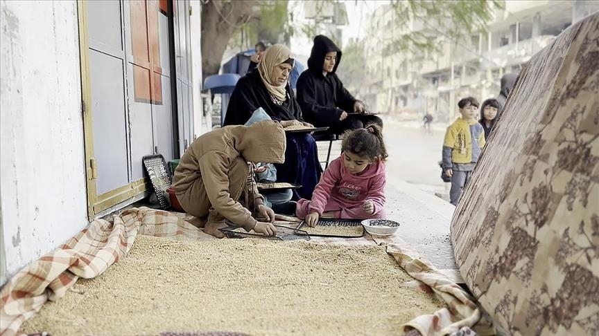 Berbicara kepada Anadolu warga Gaza Awatif al-Besyuni mengatakan para warga terpaksa menggiling gandum dan jagung, yang seharusnya digunakan sebagai pakan ternak, untuk membuat makanan sehari-hari mereka.