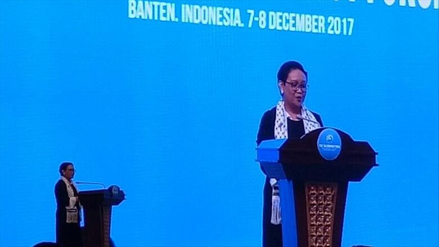 "Indonesia akan berdiri bersama dengan masyarakat Palestina," ujar Retno Marsudi.