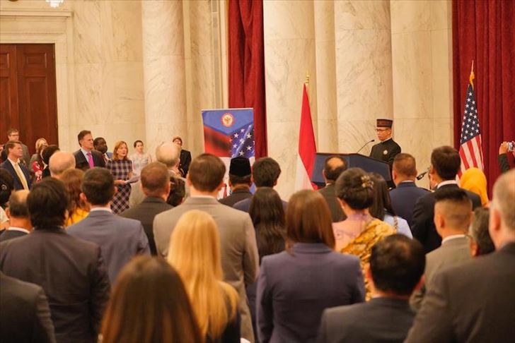 Lebih dari 300 undangan hadir dalam resepsi peringatan Hari Ulang Tahun Kemerdekaan RI sekaligus perayaan 70 tahun hubungan diplomatik RI-AS yang jatuh pada tahun ini di Gedung Senat, Amerika Serikat.