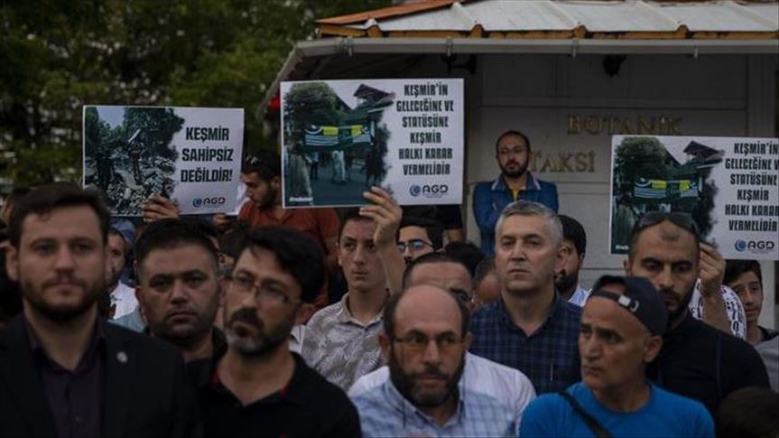 Sebuah protes serupa diadakan di luar Konsulat India di Istanbul. Puluhan orang mengibarkan bendera Kashmir dan Pakistan dan meneriakkan slogan-slogan yang mendukung kebebasan Kashmir.