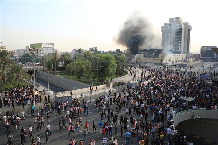 Hakim al-Asadi, salah satu perwira militer yang bertanggung jawab atas Komando Operasi Al Rafidain, mengatakan kepada Anadolu Agency bahwa para demonstran membakar gedung-gedung pemerintah.