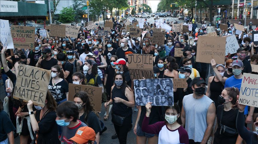 Aksi unjuk rasa itu menentang kekerasan polisi kulit putih yang menewaskan George Floyd, seorang warga kulit hitam asal Minneapolis, Minnesota.