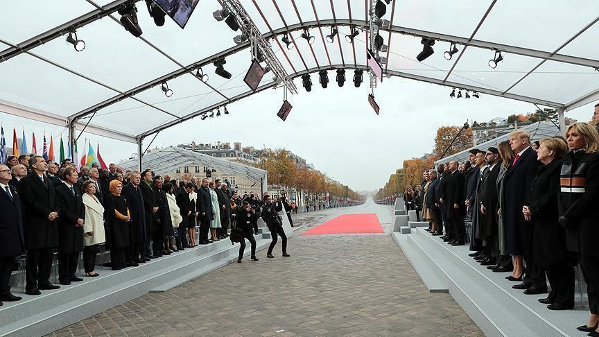 Lebih dari 70 kepala negara dan pemerintah - termasuk Presiden Turki Recep Tayyip Erdogan, Presiden AS Donald Trump, Presiden Rusia Vladimir Putin dan Kanselir Jerman Angela Merkel - menghadiri upacara peringatan di Paris yang diselenggarakan oleh Presiden Prancis Emmanuel Macron.