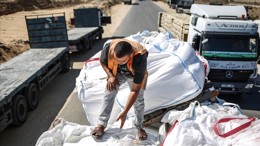 Truk yang membawa pasokan kebutuhan darurat itu melewati gerbang perbatasan Cilvegozu di provinsi Hatay, selatan Turki.