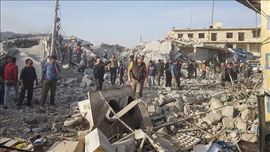 Tiga serangan udara menargetkan pasar, di mana ratusan warga berada di kota Atarib yang dikuasai oposisi, ujar pejabat resmi White Helmets Khalid Al Khatib kepada Anadolu Agency.
