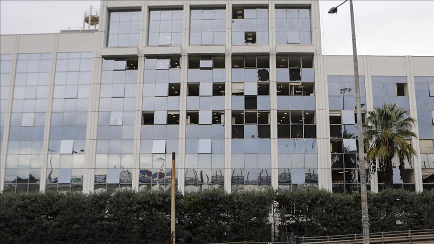 Gedung stasiun televisi swasta Yunani, SKAI mengalami kerusakan akibat ledakan bom waktu yang ditaruh di dalamnya, Senin.