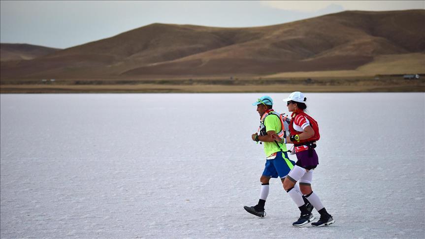 The Marathon Garmin Runfire Salt Trail Ultra Trail dimulai Jumat lalu di Danau Tuz Turki di provinsi Aksaray.