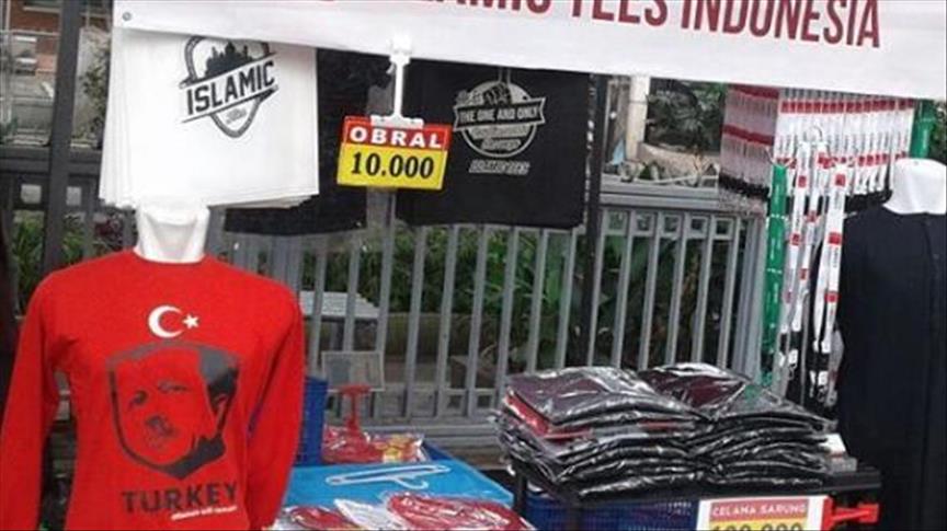 Ternyata Fikri bukan satu-satunya orang Indonesia yang kesengsem pada Presiden Erdogan. Setelah dilempar ke pasar, kaos bergambar Erdogan laris-manis diburu pembeli.