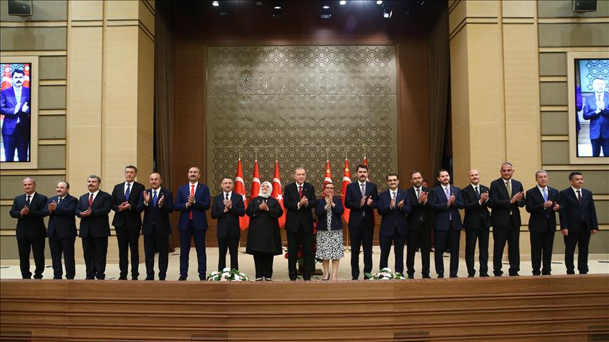 Presiden Recep Tayyip Erdogan mengumumkan nama-nama anggota kabinet presiden baru kemarin malam.