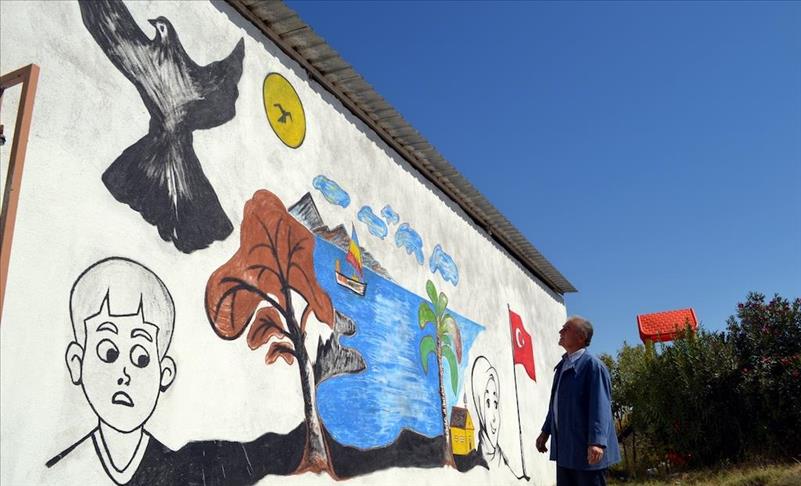Mustafa Toga, pensiunan guru sastra Turki itu dijuluki sebagai 'Picasso Mustafa' setelah mencorat-coret dinding rumah penduduk di desanya dengan berbagai macam gambar.