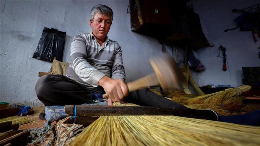 Penduduk di desa Alibeyli, kabupaten Carsamba, Kota Samsun menganyam sapu sebagai mata pencaharian turun menurun dari kakek mereka.