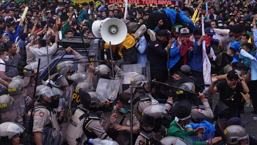 "Dalam keadaan yang mengganggu ketertiban umum serta merusak fasilitas umum dan milik pribadi, dapat direspon polisi dengan tingkat kekerasan yang proporsional," kata Agus kepada Anadolu Agency, Jumat.