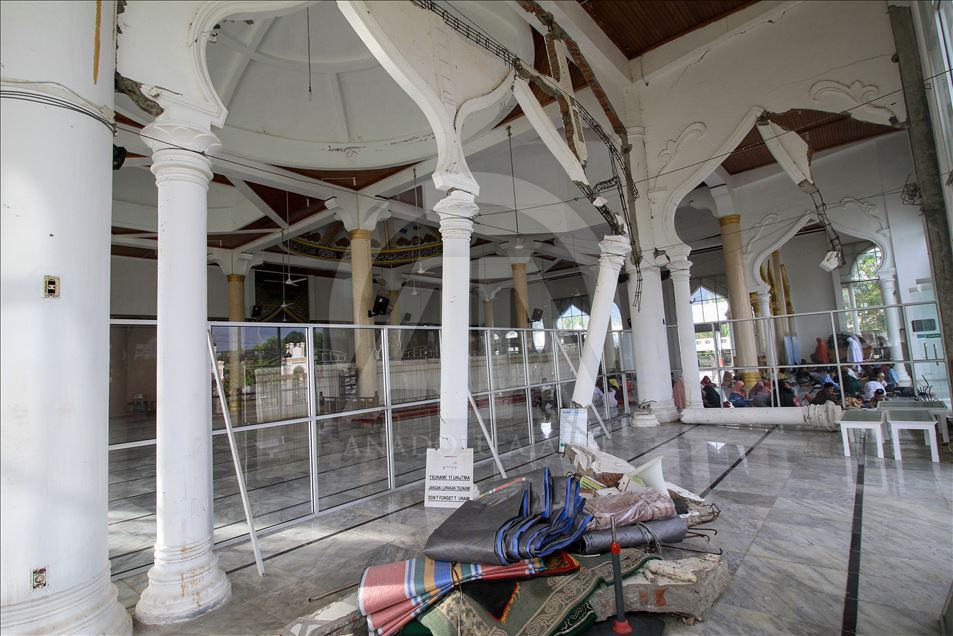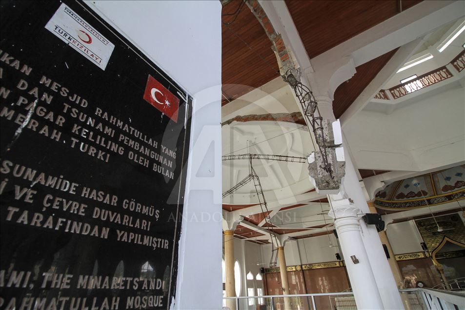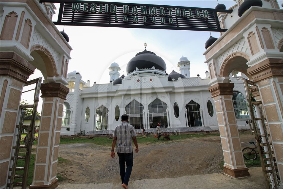 ACEH, INDONESIA - 29 OKTOBER: Bangunan Masjid Rahmatullah setelah 15 tahun gelombang tsunami menghantam, di Lampuuk, kabupaten Aceh Besar, Provinsi Aceh, Indonesia, Senin (28/10/2019). Masjid berjarak 500 meter dari pantai ini tetap berdiri kokoh di tengah kehancuran akibat dihantam tsunami Aceh pada 2004 silam, hanya beberapa sisi rusak yang kemudian direnovasi oleh Bulan Merah Merah Turki. ( Khalis Surry - Anadolu Agency )Khalis Surry