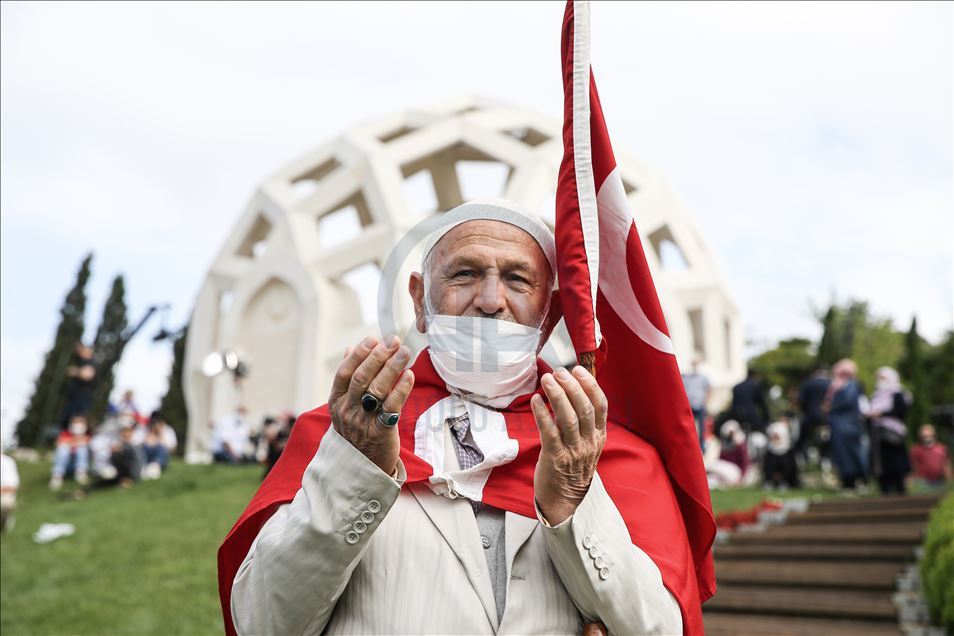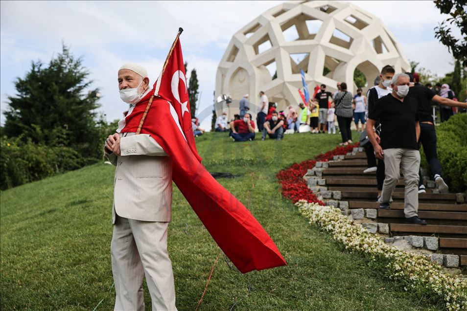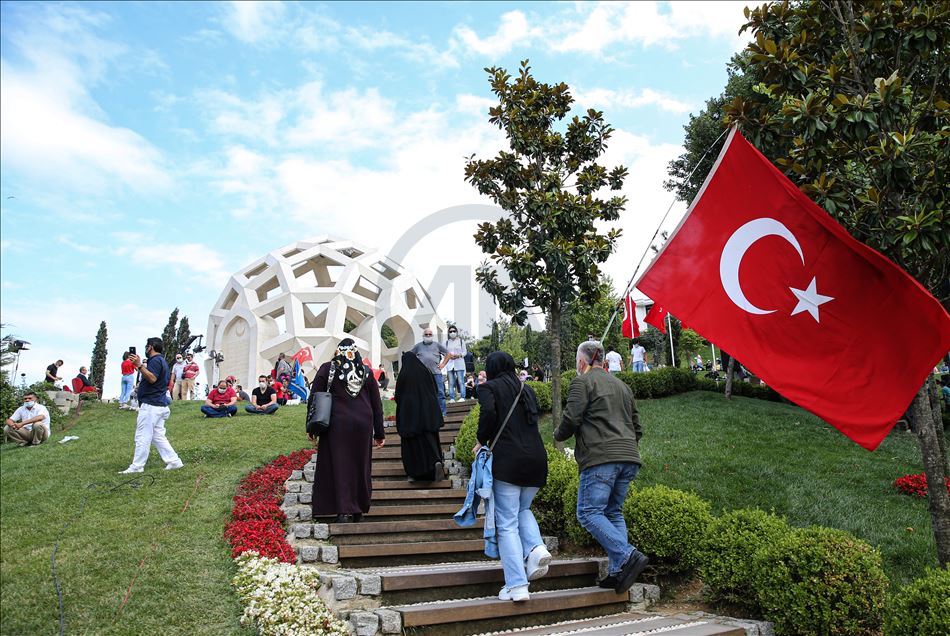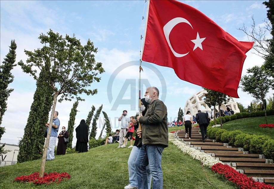 Warga mengunjungi Monumen Martir 15 Juli dalam peringatan Hari Demokrasi dan Persatuan Nasional 15 Juli, yang menandai empat tahun upaya kudeta 15 Juli 2016 oleh organisasi teroris Fetullah (FETO) yang digagalkan, di Istanbul, Turki pada pada 15 Juli 2020. Elif Öztürk