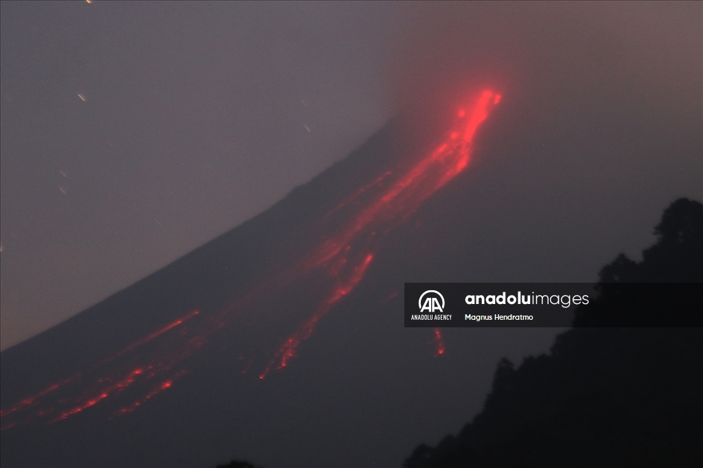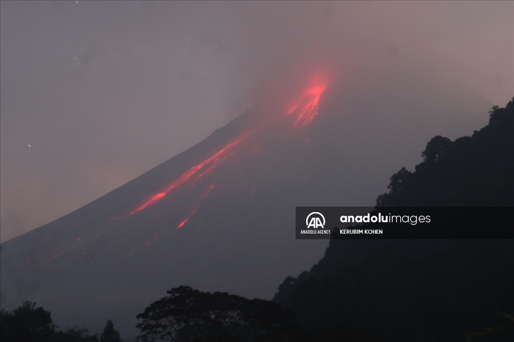 Gunung Merapi memuntahkan lava saat meletus beberapa kali, terlihat dari desa Turgo, kabupaten Sleman di Yogyakarta, Indonesia pada 02 Juni 2023.KERUBIM KOHEN