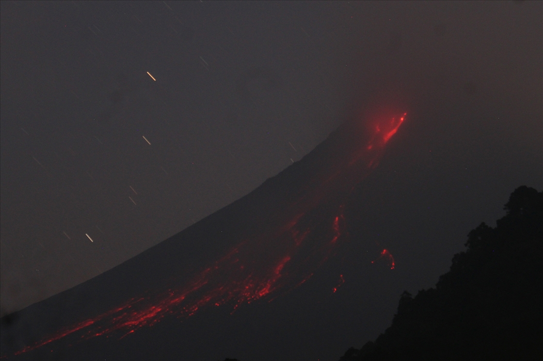 Gunung Merapi memuntahkan lava saat meletus beberapa kali, terlihat dari desa Turgo, kabupaten Sleman di Yogyakarta, Indonesia pada 02 Juni 2023.Magnus Hendratmo