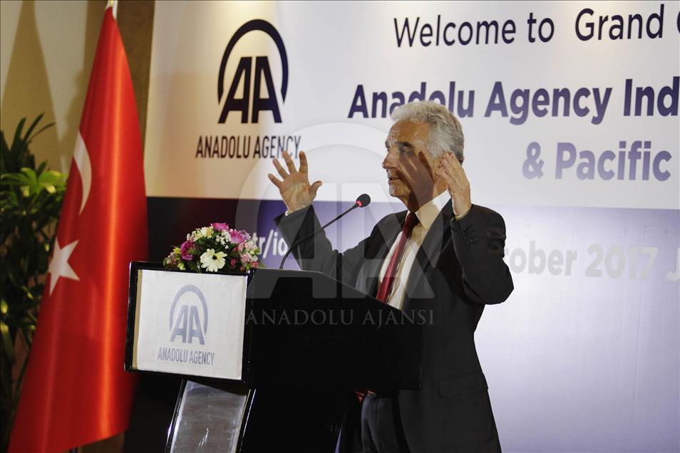 Dewan Direksi Anadolu Agency Ali Turker Pirtini memberikan sambutan saat peresmian kantor Berita Anadolu Agency layanan Bahasa Indonesia di Hotel Borbudur, Jakarta, Selasa 23 Oktober 2017. (Anadolu Agency-Eko Siswono Toyudho). (Anadolu Agency-Eko Siswono Toyudho) Eko Siswono Toyudho