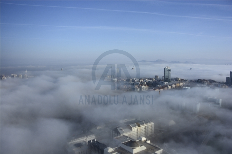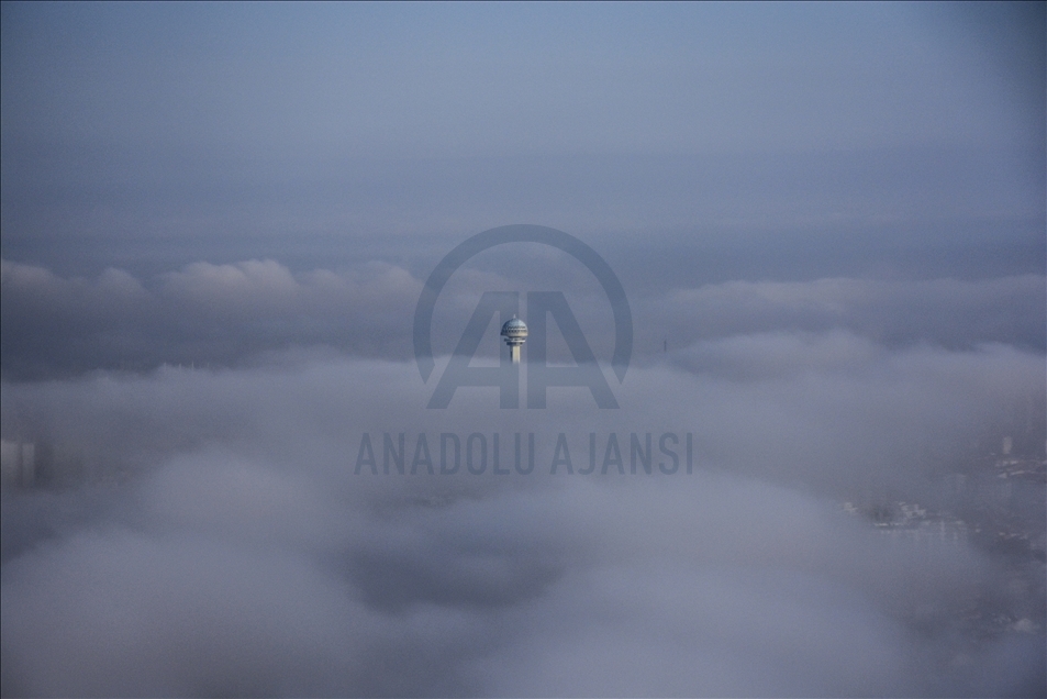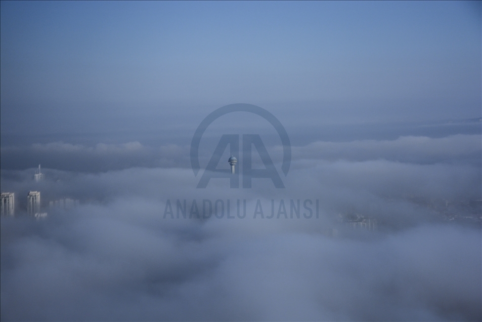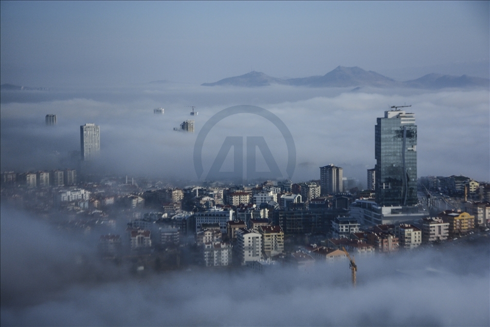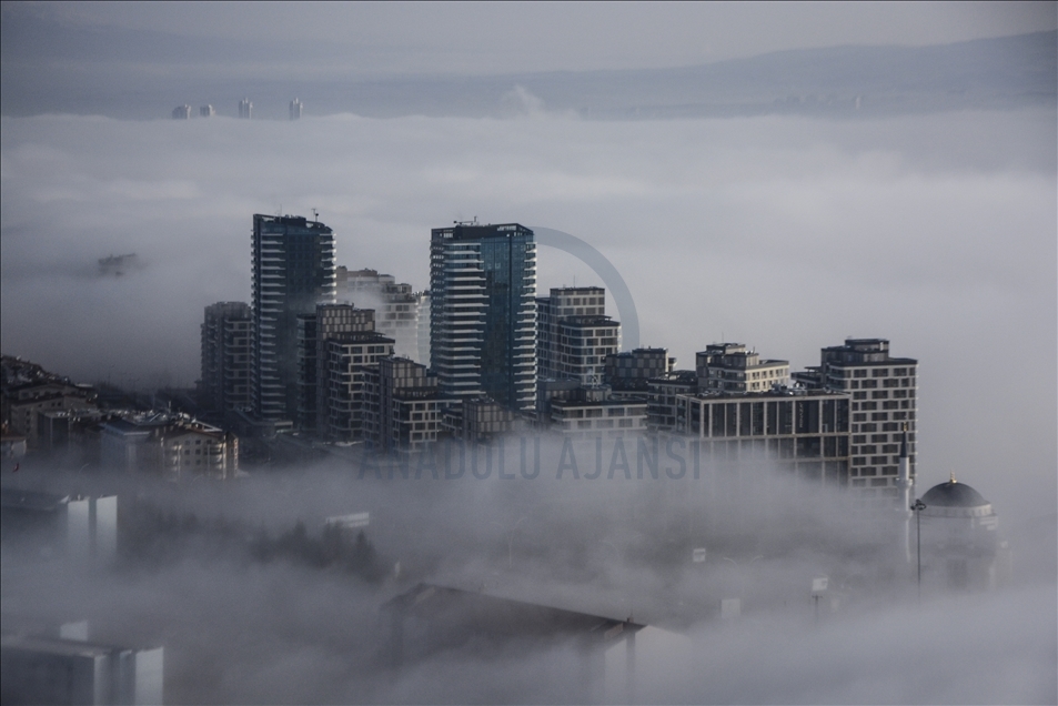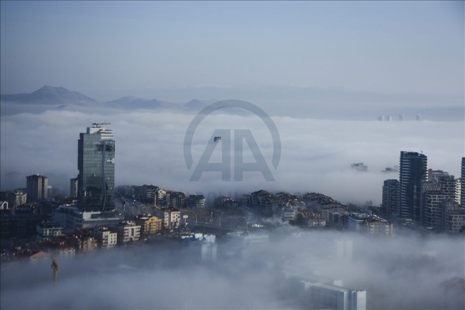 Kabut pagi menyelimuti distrik Cankaya dan sekitarnya di Ankara, Turki pada 6 Januari 2021