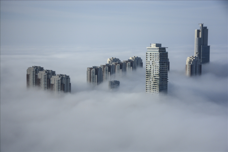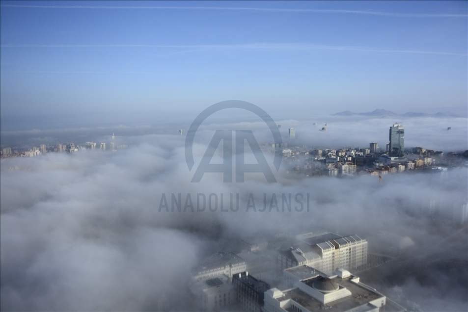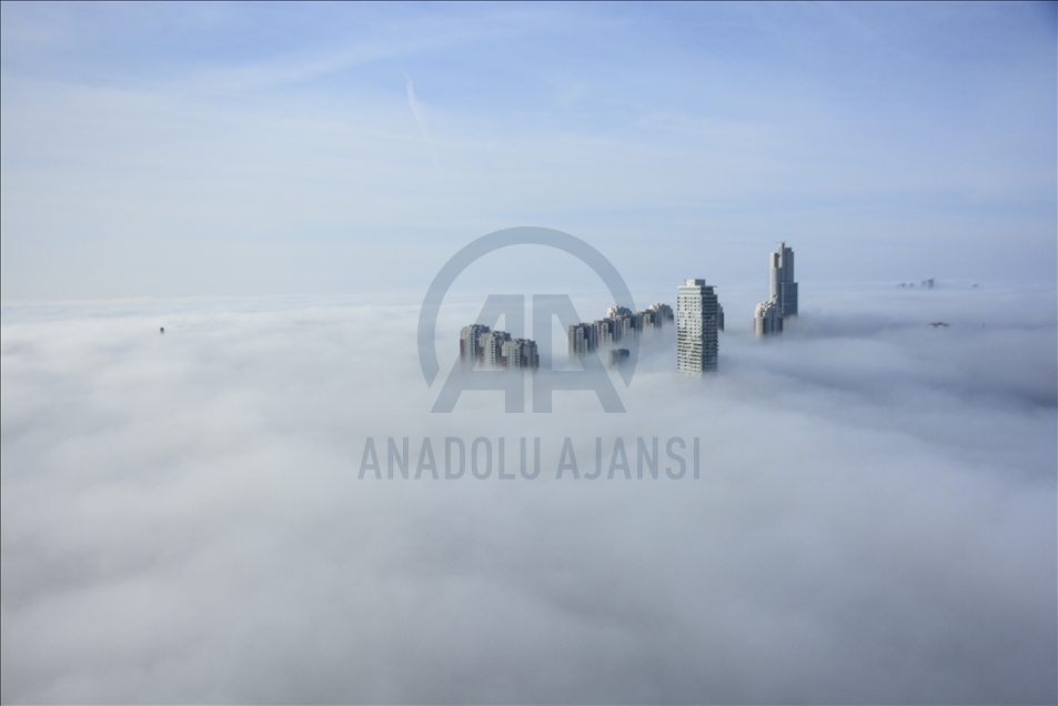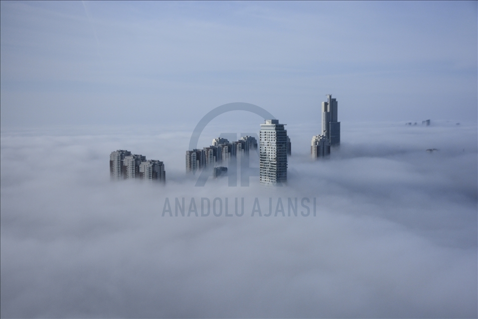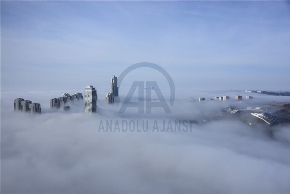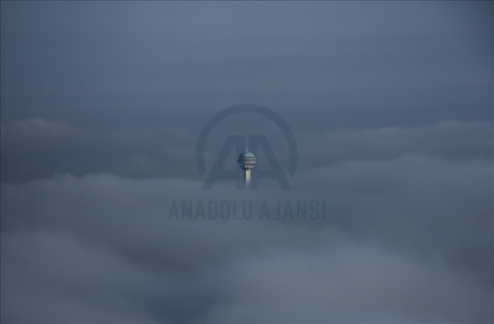 Kabut pagi menyelimuti distrik Cankaya dan sekitarnya di Ankara, Turki pada 6 Januari 2021