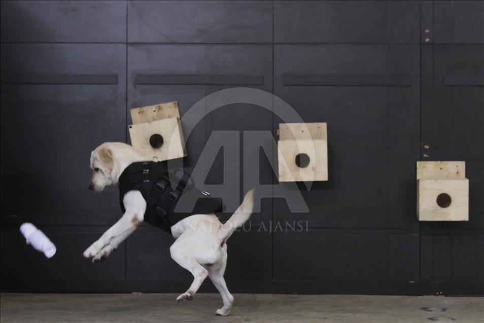 Seekor anjing ras Labrador Retriever bernama Pongki mendeteksi aroma narkotik saat melakukan pelatihan di Indoor Training Pusat Pelatihan K-9 Badan Narkotika Nasional, Bogor, Jawa Barat pada Kamis 8 November 2018. Eko Siswono Toyudho
