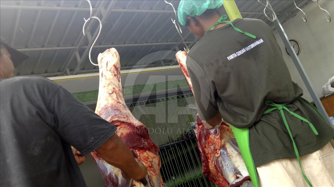 JAKARTA, INDONESIA – 1 SEPTEMBER: Ratusan petugas kesehatan disebar ke lima wilayah kota dan Kabupaten Kepulauan Seribu untuk memeriksa hewan kurban yang disembelih. Panitia pemotongan hewan kurban, juga menerima alat potong tulang dari Dinas Peternakan DKI Jakarta.Megiza Asmail