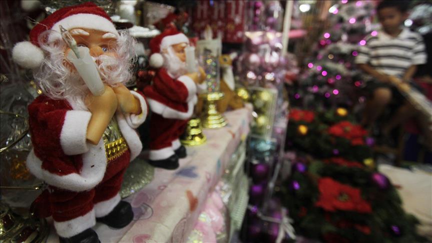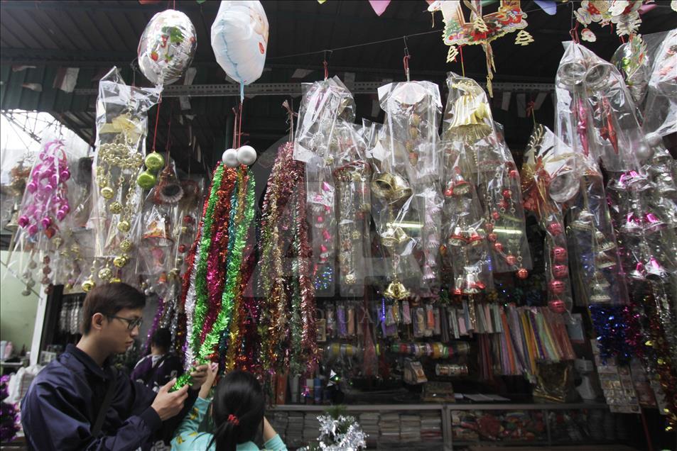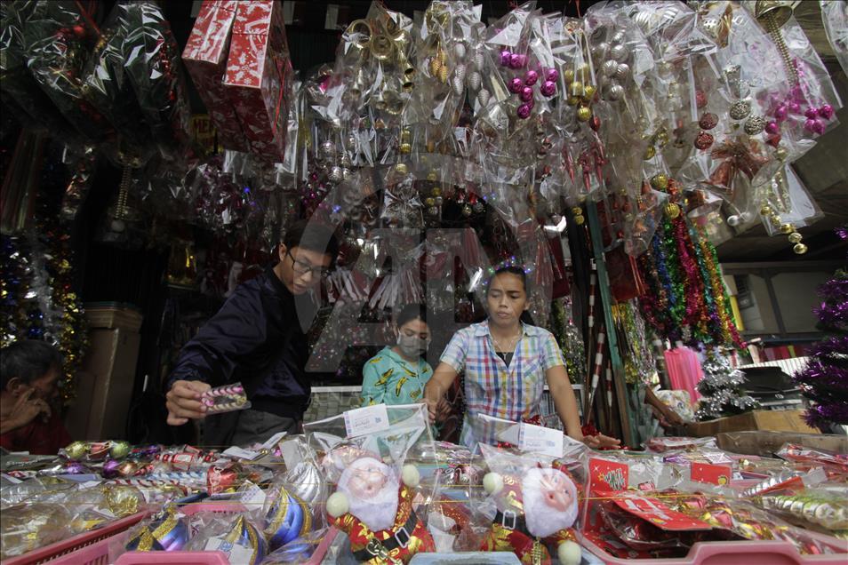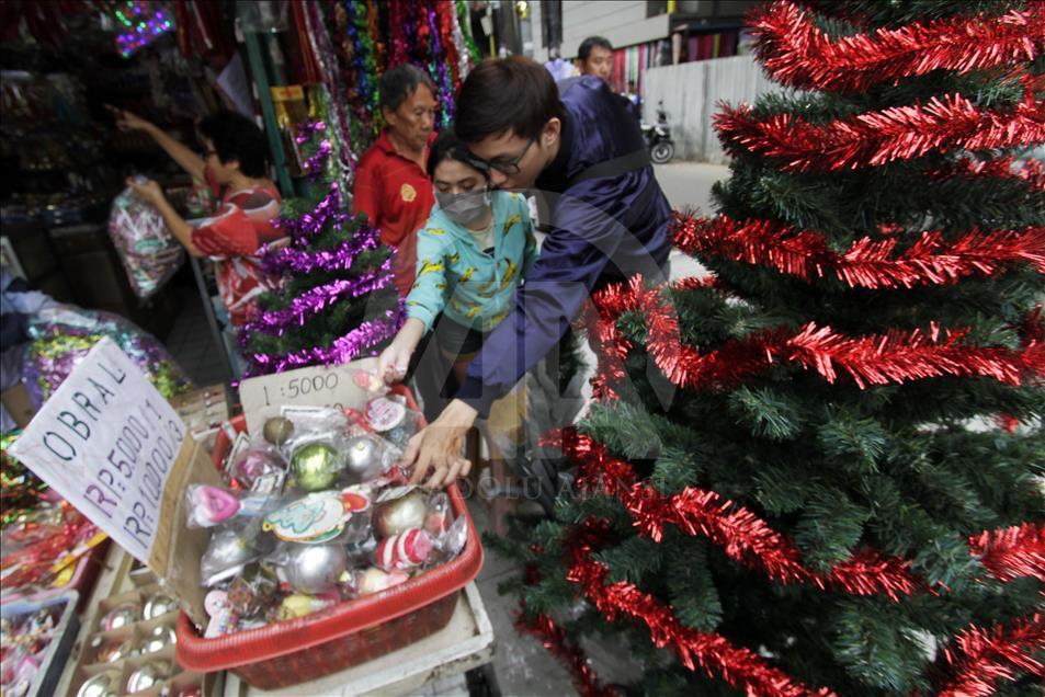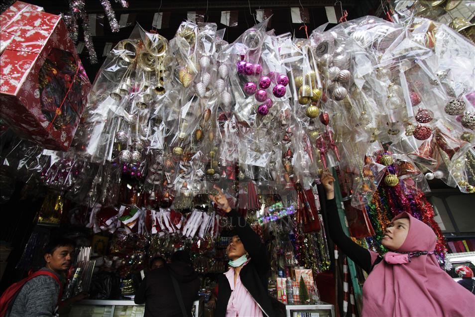 Calon pembeli memilih hiasan Natal di Pasar Asemka, Jakarta, Indonesia pada 18 Desember 2017. Berbagai pernak-pernik Natal untuk hiasan pohon dan rumah dijual berkisar dari harga Rp 5 ribu hingga Rp 2 juta, kebanyakan berasal dari Tiongkok. Eko Siswono Toyudho