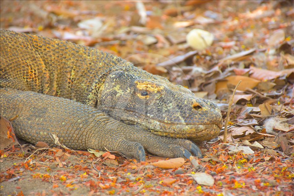 Seekor komodo terlihat di Pulau Komodo di Kawasan Taman Nasional Komodo di Nusa Tenggara Timur pada 9 Desember 2019. Muhammad Nazarudin Latief