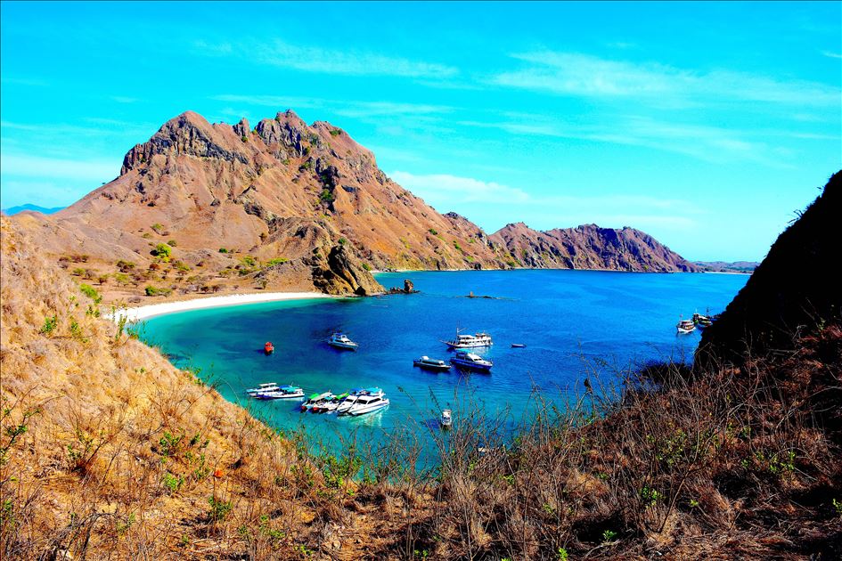 Pemandangan laut dan pulau-pulau di sekitar Taman Nasional Komodo, Nusa Tenggara Timur, Indonesia pada 9 Desember 2019. Taman Nasional Komodo adalah salah satu tujuan wisata premium di Indonesia. Muhammad Nazarudin Latief