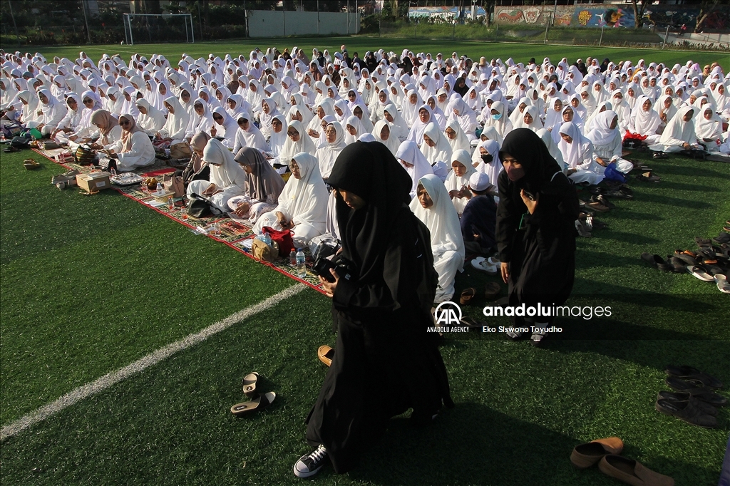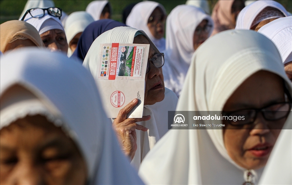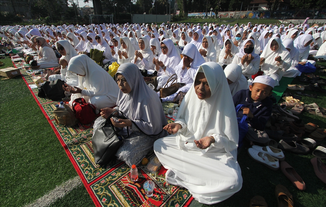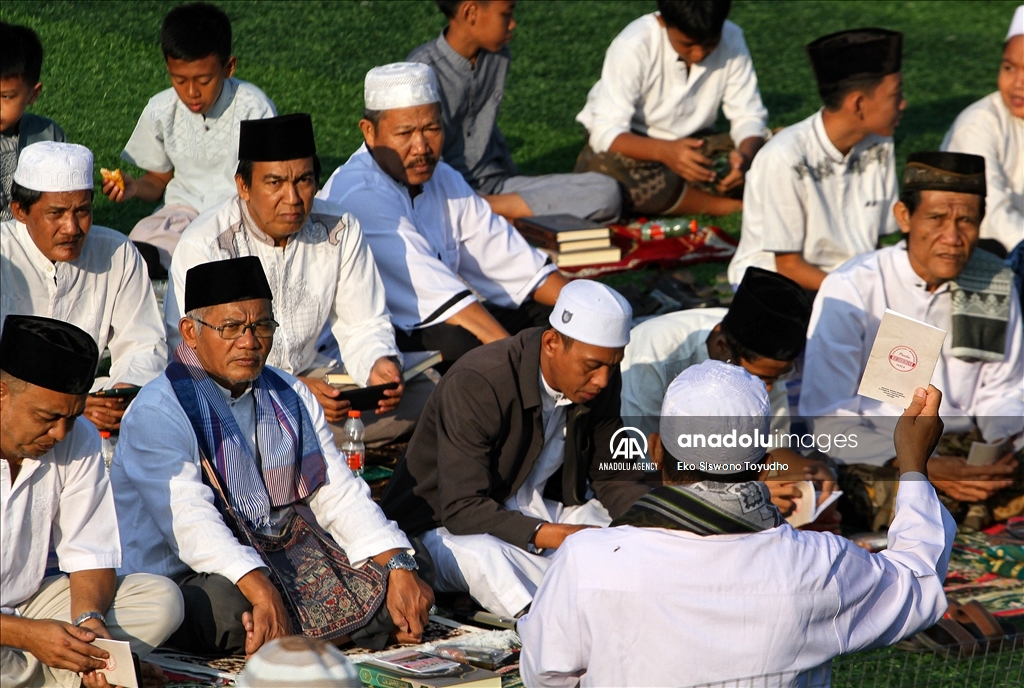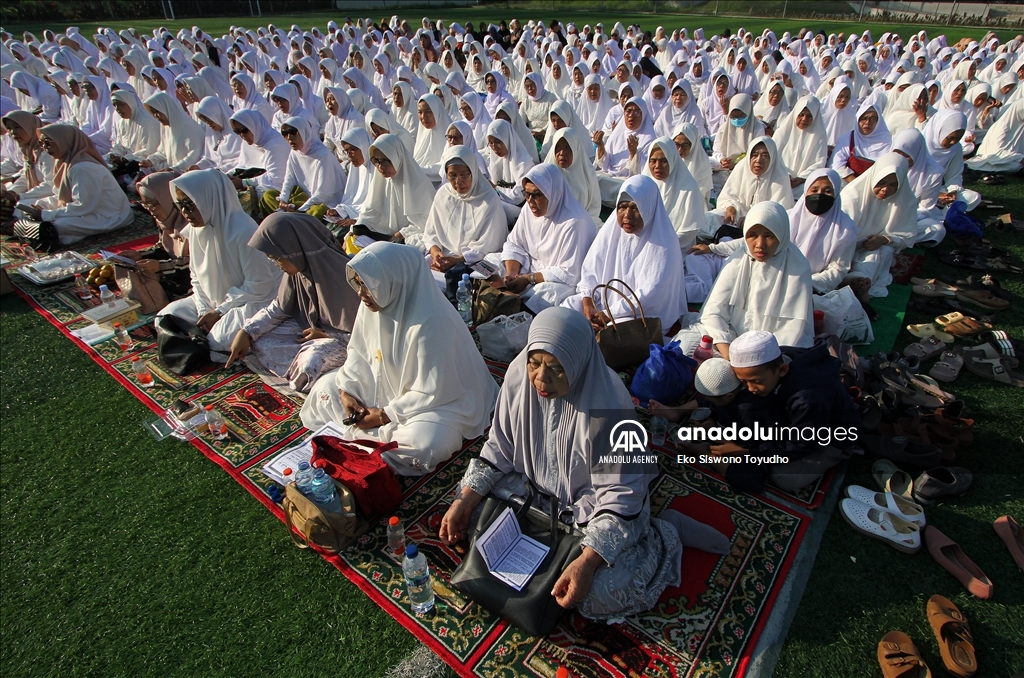 Ribuan warga menghadiri zikir dan doa bersama dilapangan Manunggal, Menteng, Bogor, Jawa Barat, Indonesia pada Rabu 19 Julli, 2023. Doa dan zikir bersama tersebut dilakukan untuk memperingati Tahun Baru Islam 1 Muharram 1445 Hijriah. Eko Siswono Toyudho