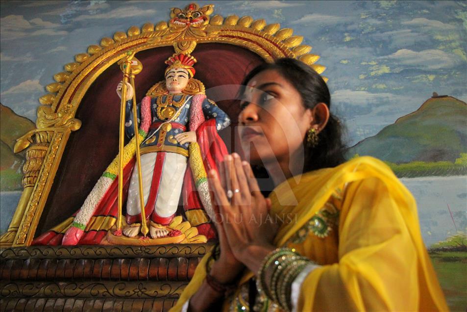 Para pemeluk agama Hindu dari suku Tamil sembahyang di kuil Palani Andawer dalam prosesi perayaan Thaipusam sebagai bentuk perayaan Maha Puja Pangguni Uthiram, di Aceh pada 8 April 2018. Ritual Thaipusam memperlihatkan aksi menusuk tubuh menggunakan benda tajam sebagai bentuk merayakan kemenangan Dewa Murugan serta wujud rasa syukur. Khalis Surry