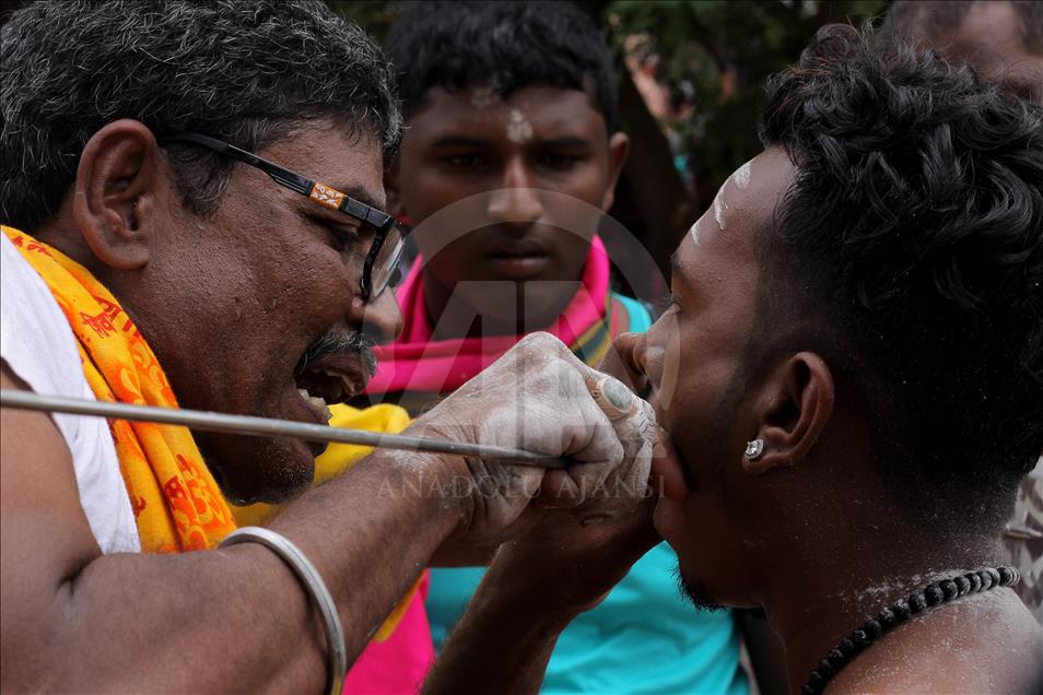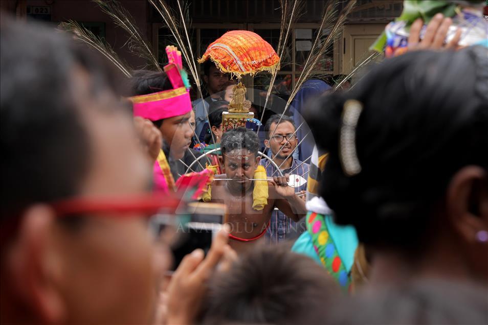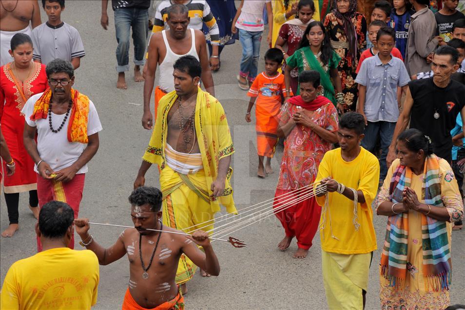 Umat Hindu dari suku Tamil di Aceh berkeliling desa melakukan dalam prosesi perayaan Thaipusam sebagai bentuk perayaan Maha Puja Pangguni Uthiram, di Aceh pada 8 April 2018. Ritual Thaipusam memperlihatkan aksi menusuk tubuh menggunakan benda tajam sebagai bentuk merayakan kemenangan Dewa Murugan serta wujud rasa syukur.Khalis Surry