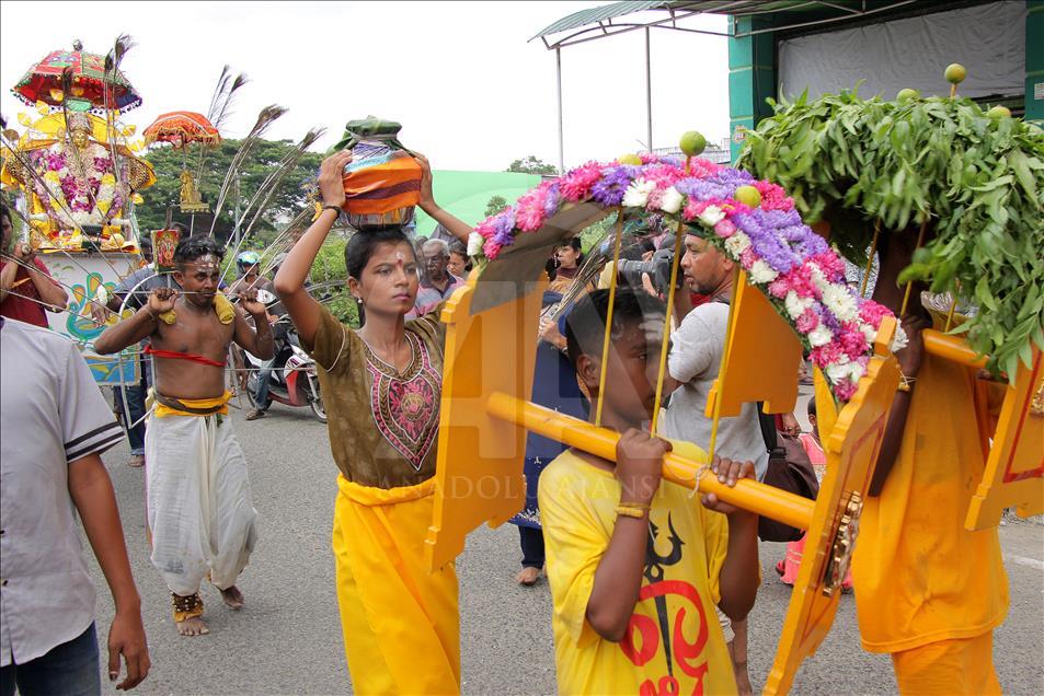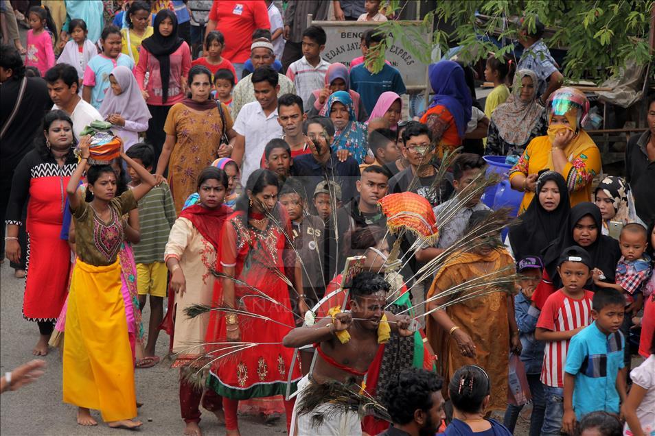 Umat Hindu dari suku Tamil di Aceh berkeliling desa melakukan dalam prosesi perayaan Thaipusam sebagai bentuk perayaan Maha Puja Pangguni Uthiram, di Aceh pada 8 April 2018. Ritual Thaipusam memperlihatkan aksi menusuk tubuh menggunakan benda tajam sebagai bentuk merayakan kemenangan Dewa Murugan serta wujud rasa syukur. Khalis Surry