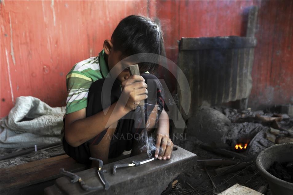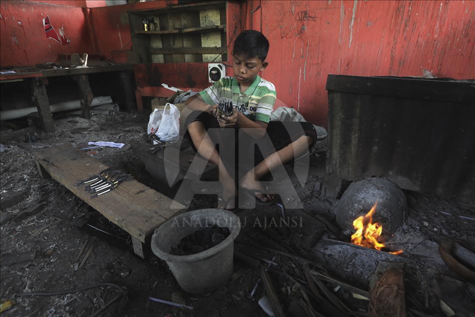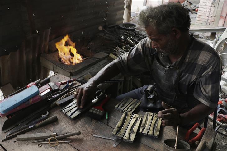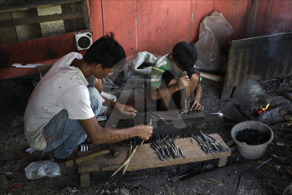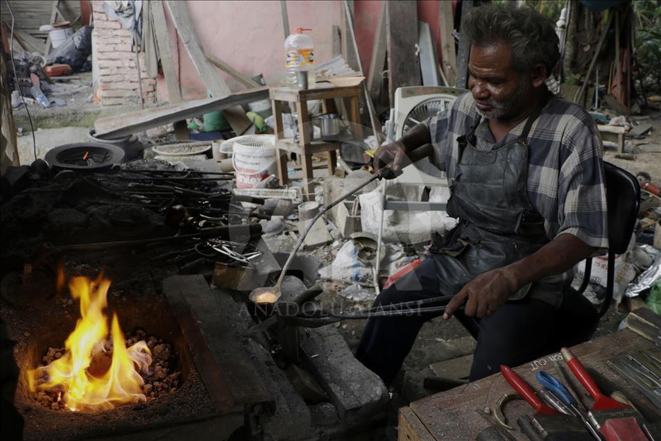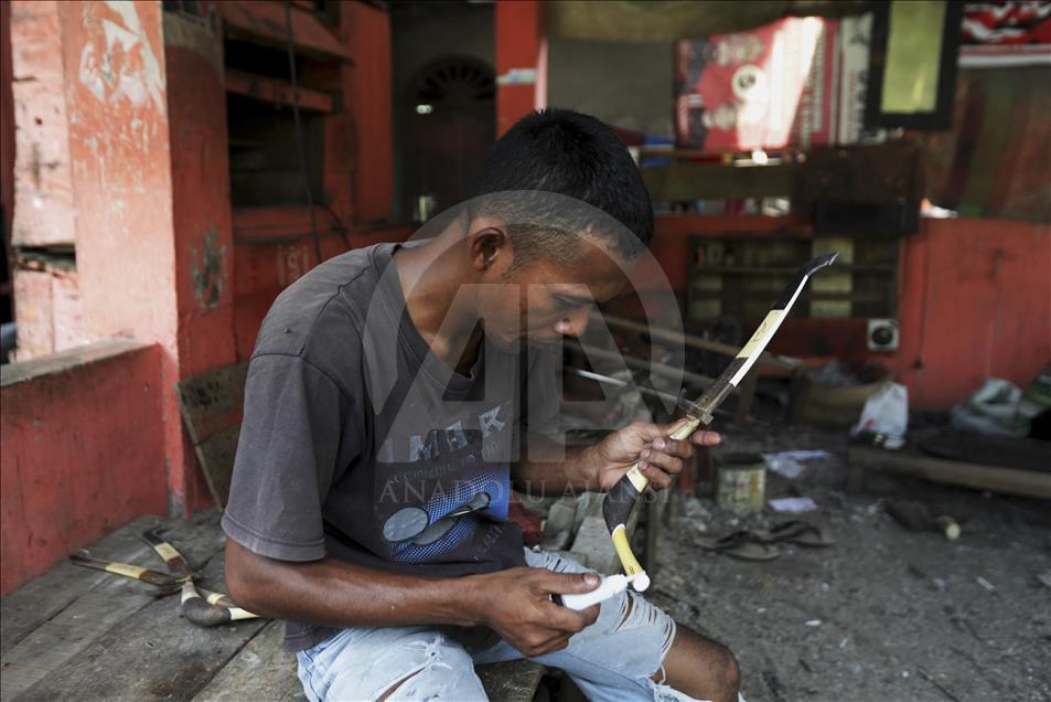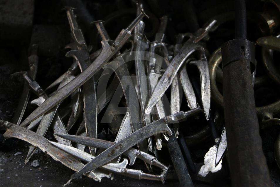 Pengrajin membuat Rencong di Desa Baet Lampuot, Kabupaten Aceh Besar, Provinsi Aceh pada 06 Januari 2018. Rencong merupakan salah satu senjata tradisional Aceh dan saat ini berubah peran menjadi suvenir.