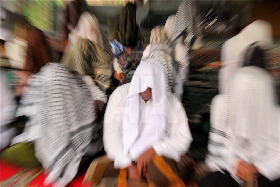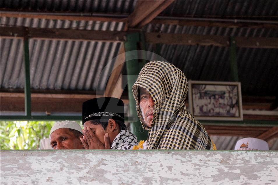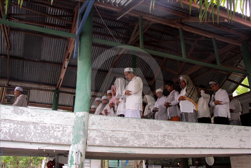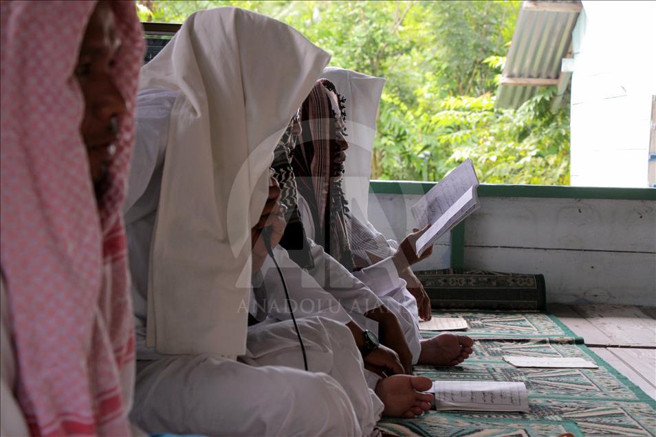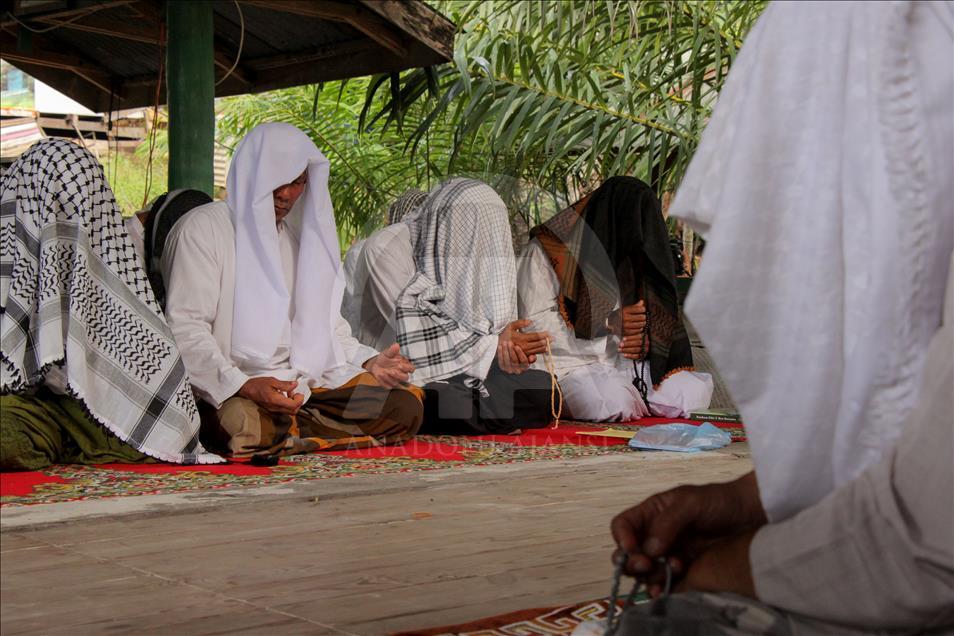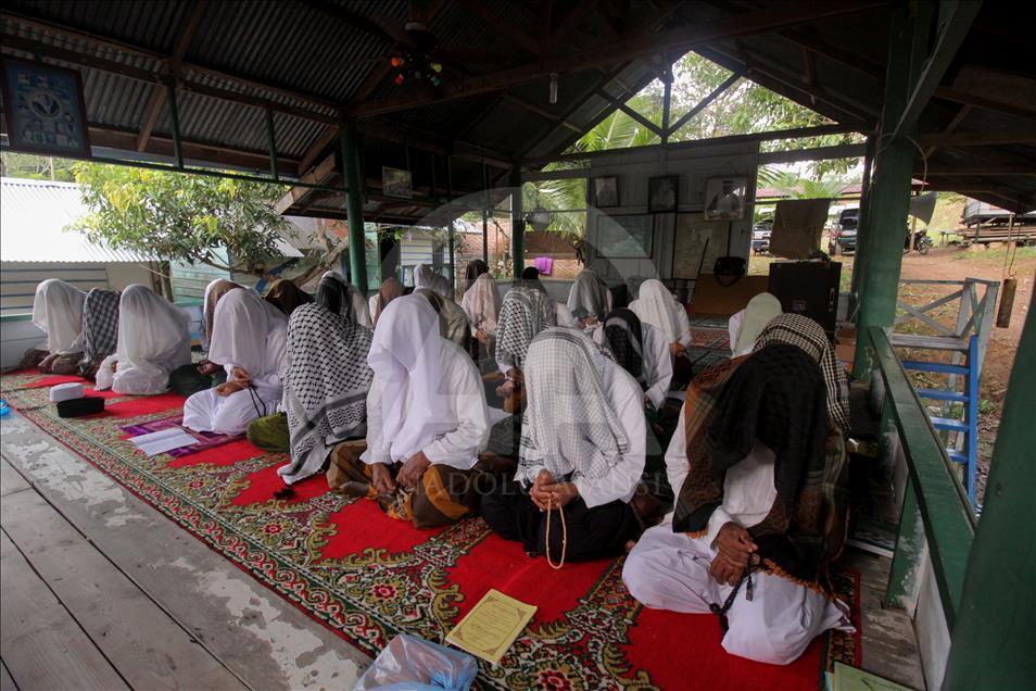Jemaah Suluk saat berzikir di Dayah Seramoe Darussalam Aceh, Indonesia, 26 Mei 2018. Suluk adalah berzikir terus-menerus dengan tujuan mendekatkan diri serta ingin memperoleh keridhaan Allah SWT. Suluk berasal dari Tarekat Naqsabandiyah yang disebarkan oleh Syekh Muda Waly Al Khalidi di Aceh. ( Khalis Surry - Anadolu Agency )Khalis Surry