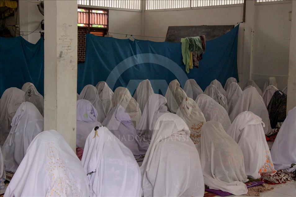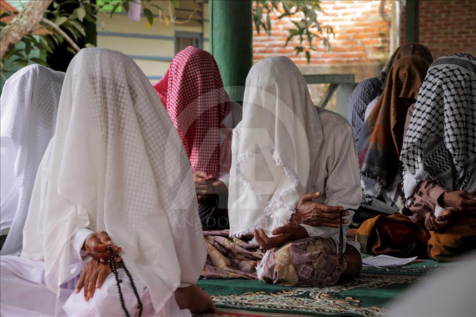 Jemaah Suluk perempuan sedang berzikir di Dayah Asy-Syafi’iyah Aceh Indonesia, 26 Mei 2018. Suluk adalah berzikir terus-menerus dengan tujuan mendekatkan diri serta ingin memperoleh keridhaan Allah SWT. Suluk berasal dari Tarekat Naqsabandiyah yang disebarkan oleh Syekh Muda Waly Al Khalidi di Aceh. ( Khalis Surry - Anadolu Agency )Khalis Surry
